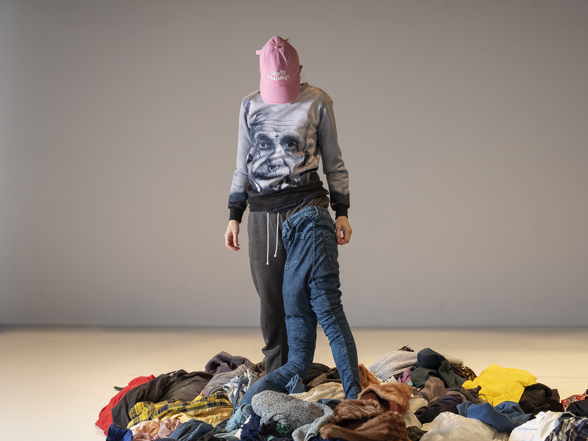 Anne-Lise Tacheron a collecté un grand nombre de vêtements de seconde main en s’intéressant aux récits de leur fabrication, de leur usage et de leur circulation. Acte somme toute assez banal du quotidien, l’habillement se révèle être un marqueur d’une société et de son époque. L’amas de textiles accumulés par l’artiste devient une matière malléable et en constante transformation qui ne cesse d’interroger la relation du corps aux vêtements. Les gestes et les attitudes corporels liés aux façons de se vêtir constituent un système de signes qui informent sur le genre, l’âge, le statut social, et révèlent des appartenances à des groupes, ou même des aspirations politiques. Dans Action Center, trois interprètes cherchent à donner corps à des tissus pour créer des sculptures éphémères et poétiques dans lesquelles l’individu tend à disparaître.