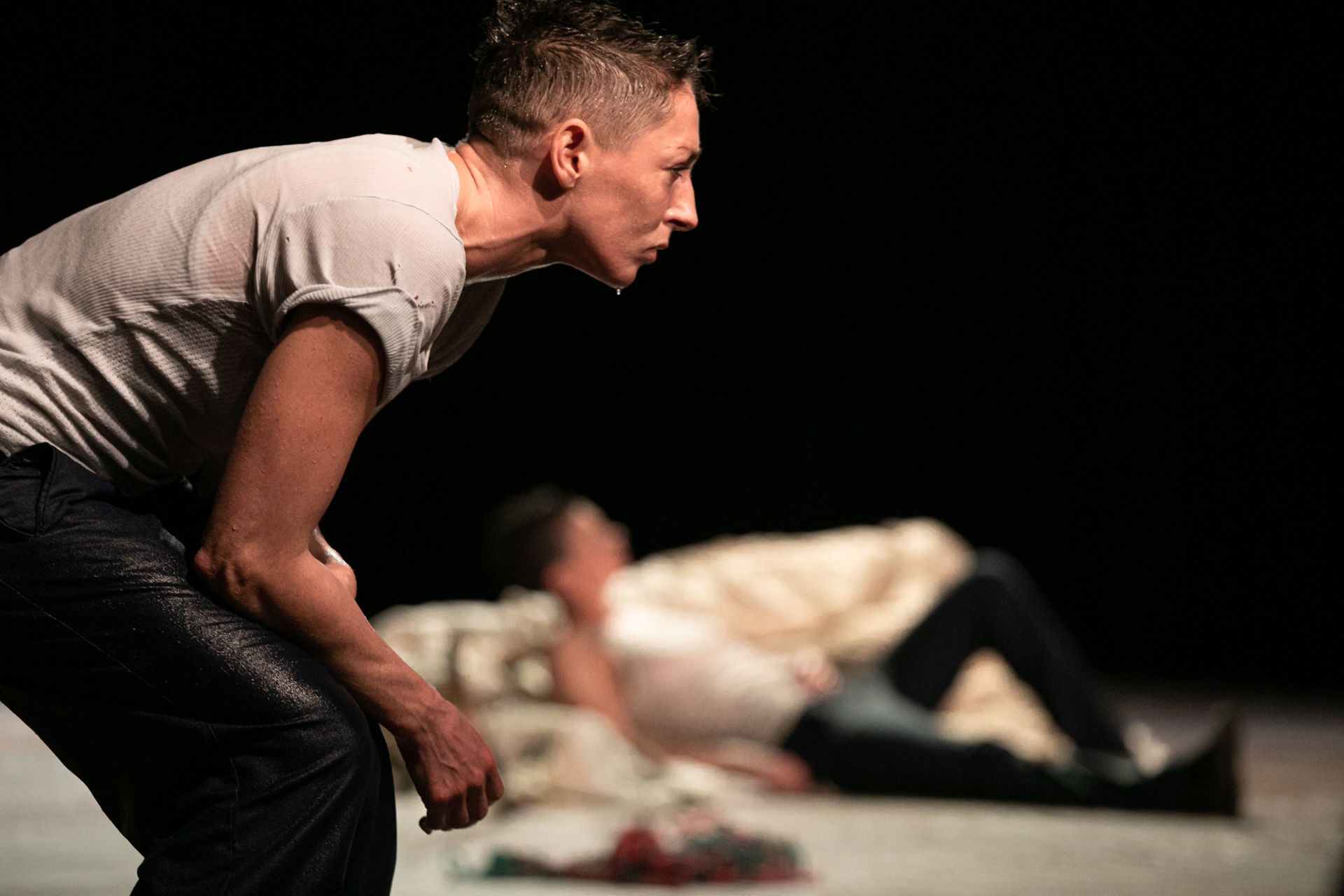Inspirées par L’Odyssée d’Homère, Simone Aughterlony, Petra Hrašćanec et Saša Božić abordent le thème de l’aliénation et nous confrontent à la dystopie d’être ensemble dans un paysage fascinant d’images marines et de figures mystiques. Ironiquement, le poème épique sur la mer et les aventures maritimes s’est mué en un récit sur la solitude qui peut être lu à la fois comme une histoire personnelle dans un univers infini et comme une parabole d’une nouvelle Europe. La répétition de voyages mystérieux et l’inévitabilité de naufrages désespérés: une preuve que nous sommes essentiellement seul·e·x·s et toujours perçu·e·x·s comme des étranger·e·x·s sur de nouvelles côtes.