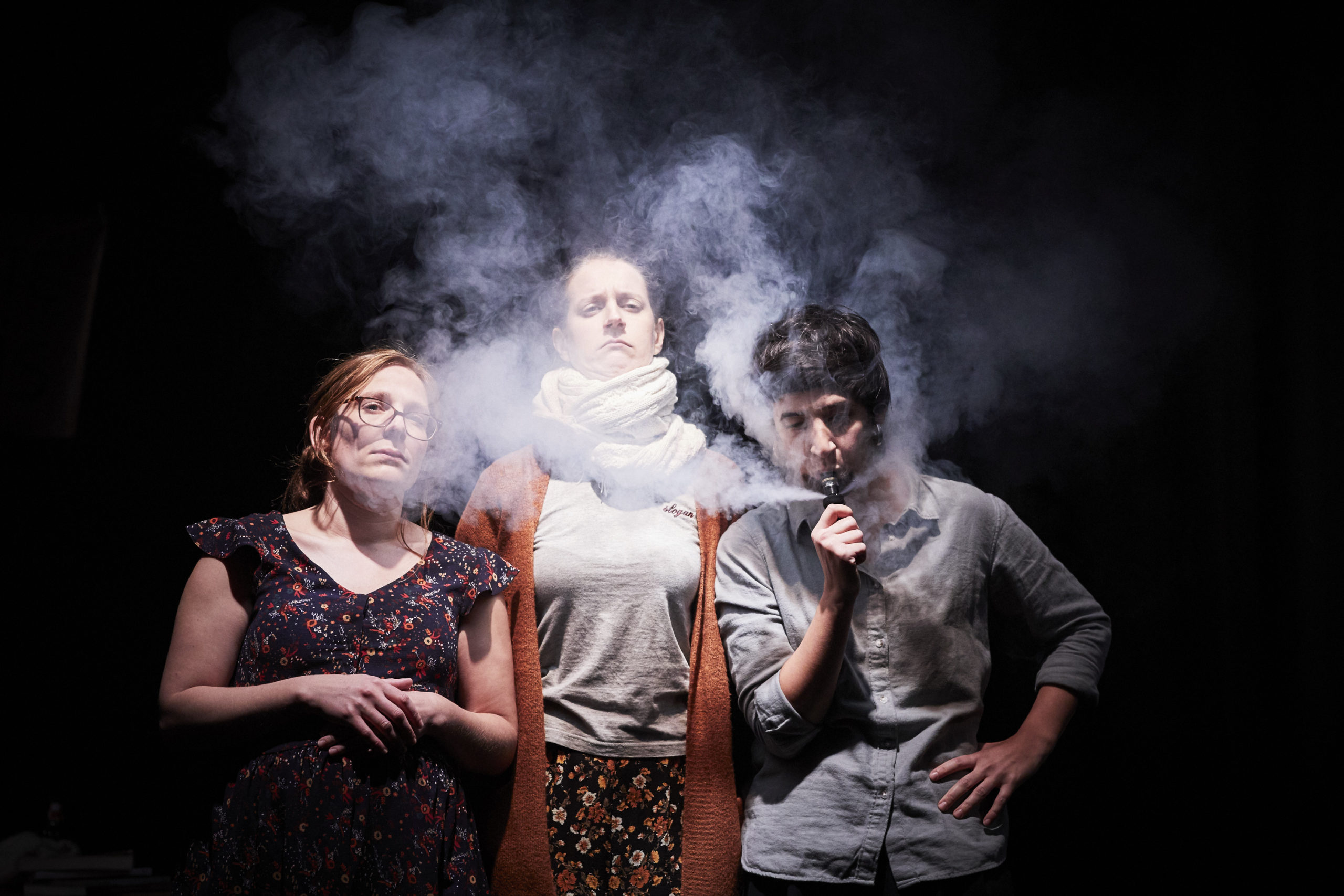 C’est à l’assaut des tabous liés au corps féminin que partent Les Filles de Simone dans cette performance aussi culottée que salvatrice. Réunies pour élaborer ensemble un livre sur le corps des femmes, cinq trentenaires débattent et se débattent avec les hontes, les tabous, les traumatismes, et disent tout haut ce que tout le monde vit tout bas. Elles explorent avec un humour percutant l’Histoire, les religions, la presse autant que leur vécu intime. Des injonctions esthétiques à la transmission mère-fille, des règles au clitoris, elles explosent à grands coups d’autodérision les clichés qui leur collent à la peau. Dans un mélange d’autofiction, de références sociologiques et d’articles de presse féminine, le spectacle oscille entre l’humour et l’émotion. La salle est l’espace de jeu dont le public sortira avec le sentiment d’avoir participé à un débat débridé et joyeux.